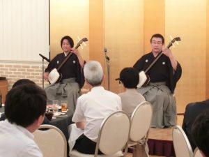 ある企業の宴席なのですが、外国のお客様もいて、洋風の曲も入れてほしいとのリクエストでしたので、こういうリクエストはよくあって、出来ないわけではないけれど、洋風の曲は三味線だけで演奏すると、音が薄いので宴会向きの演奏になりにくいのです、そこで今回はノリノリのロックンロールを洒落でじょんがらに入れ込んでみました。