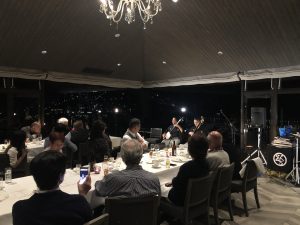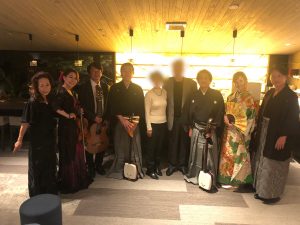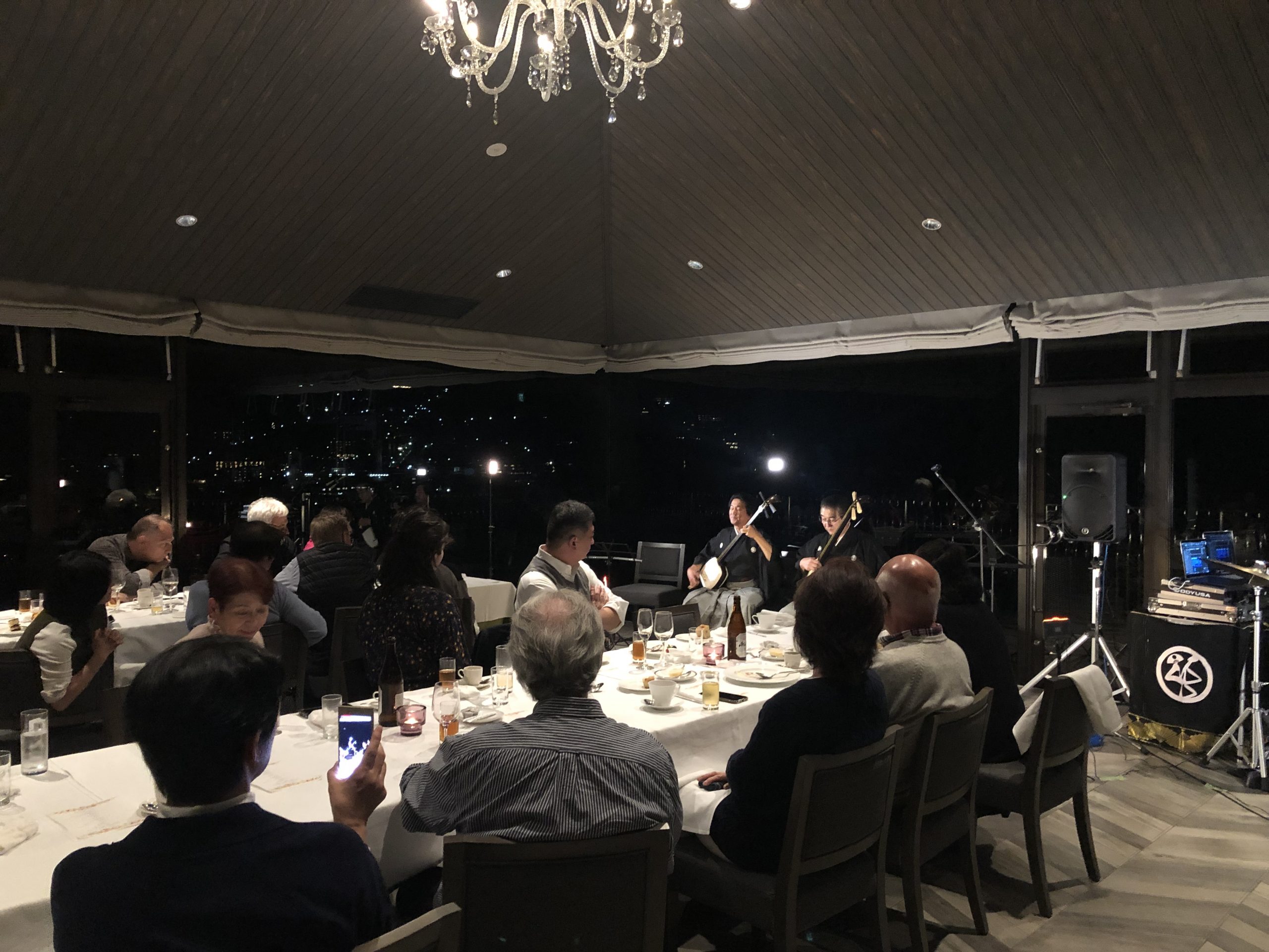 箱根のリゾートホテル 貸し切り謎の宴会 投稿日: 2022年11月13日2025年8月9日 投稿者: katsukuni 昨日は箱根のホテルで演奏してきました。 ある資産家の方の宴会 集まっているお客様もどう見ても仕事の集まりではなく、聞いてみたところ何でもないの「みんな友達」で「おーいやるぞ」で集まるんだそうです・・・謎!! ご依頼いただいた社長も謎、集まっている方も謎で年配の方から子供まで、外国の方も多数で謎 全くの謎が深まるばかりの宴席でした。 社長の自腹で全国から40人友達を集めるって感じ・・・ 紅葉の山と夜景をバックに演奏を楽しんでいただきました。